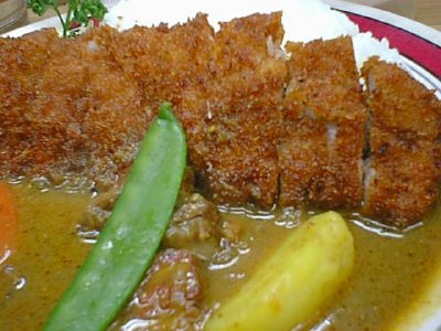 - スパイスの調合になみなみならぬものを感じながら、食べることにとにかく集中した。辛さはそれほど感じなく、食べたあとサァーッと壮快な気分にさせられる。後からいれられた人参、じゃがいもも大きくやわらかめで、とにかくこのルーによくあっている。今日ばかりはいわすにはいられない。カツがとにかく美味しい。食べて肉がとても良いとわかる。衣もサクサクッとしていて、とても食べごたえのあるカツだ。カツが素晴らしいというのはとてもよくわかる。おもわずうなってしまう見事なカツカレーであった。是非とも一度は賞味することをお勧めしよう。(な)