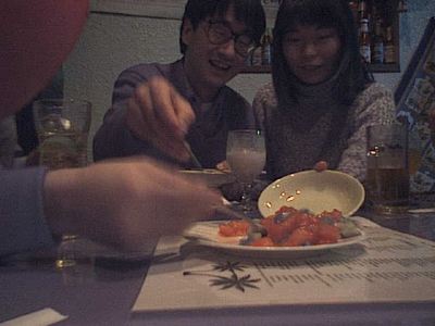 写真撮影を断られたのはとても残念だが、料理のほうは値段もリーズナブルでわりとうまかったと思う。皆にたような味(コショウ+トマトソース...)ではあるが、わりと楽しめた。店内混んでてなかなか料理がでてこないので、yukoちゃんなんかお腹がキューってなってたね(笑)。基本的に塩辛いので、酒飲みながらっていうことなんだろうか。いろいろな国の人がいました。(な)