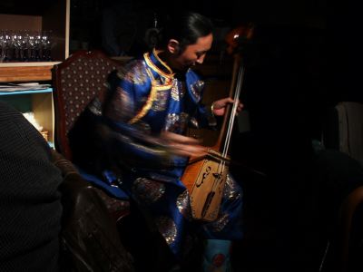 ハロントガの前に電気が消えてなにが始まるかなと思っていたら、馬頭琴という楽器による生演奏が始まった。全部で4曲ぐらい演奏したのだが、音色がバイオリンよりも低音があるような良い音色でした。店の雰囲気や店員のサービスもとても良くて、生演奏(20:00かららしい)まで聴くことができる。
