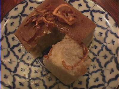 - ネギ油の入った温かいココナッツプリンです。温かいほうが香りが出ていいんだけど、もっと暖かい季節になったら冷やして食べたいかも。(め)