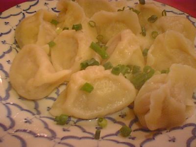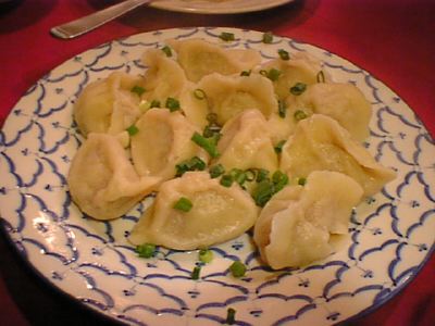 - 中にかなり肉汁があるので、一口で食べるのがよいようです。これは水餃子と違って羊の匂いがたっぷりとします。酢醤油をつけて食べたほうが美味しい。(め)