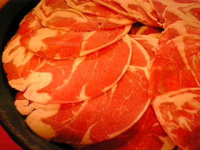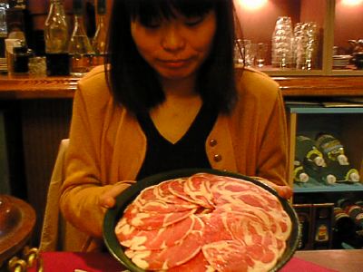 - 羊の肉ってレアで食べていいんだっけとちょっと考えてしまった。どうだっけ?ゴマダレはかなり味がきついのでちょっとだけつけるのがいいでしょう。ショウガ醤油なんかもけっこう合いそう。これも肉の味がそのまま楽しめていいです。(か)