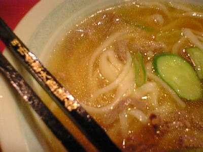 - びnさんが澄んだスープの麺を食べたいというのでこれにしました。麺類はいつも塩気が強すぎるのが問題だったけど、今日の塩加減はばっちりでした(どうやらプラニーさんが作るときにどうしても塩気が強くなるみたい)。これなら安心して頼めます。ちなみに僕はちょっと酢を入れて食べるのが好きです。(め)