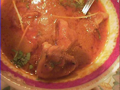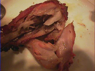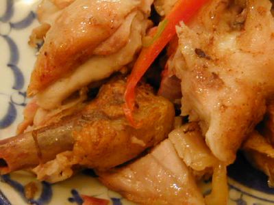 ついつい一番おいしい(と私は思ってる)骨付きの足部分をとらせてもらいました。かなり強く火が通っていたので、一部骨までいただきました。濃いけど好きな「スパイス使い」です。(az)