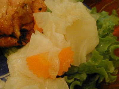 こないだシディークビレッジで食べたのほど香りはないなと思ったんだけど、実際食べてみるとけっこう効いてます。……って他の人と反対のこといってますが(笑)。肉厚でぷにぷにしているのがおもしろい。(か)