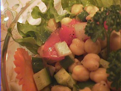 きゅうりとトマトのさいの目切りとチャナ豆をスパイシーに和えてあります。自宅で再現したい。(い)