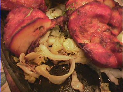 タンドール料理はどれもしっかりした味がついています。ナンとか、下に敷いてあるキャベツやたまねぎと一緒に食べるといいですね。アルゴビとかマトンドピアザみたいな汁なし系のカレーが特に気に入りました。個人的に家から近いのでちょくちょく来ようとおもいます。(い)