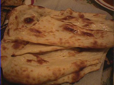 あれは練りすぎで、ゴムのような食感になってたような気がします。あるいは、寝かせすぎかも。(薄目のナンでもちゃんと発酵良かったら、パリっとした食感になるはず)冷めると悲惨なので、きたらすぐに食べてください。(az)