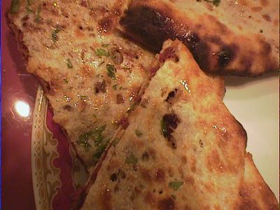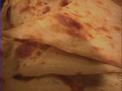 三分の二枚くらい食べたような気が・・・・。「匂いほどの味がしない」それは大量な単位で販売されてる乾燥ニンニクのスライスをもどしたものと似てる・・・。ナンの上のチップを食べながらそう思いました。(az)