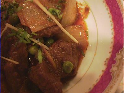 マトンをタマネギ、グリンピースとスパイスで仕上げたカレー