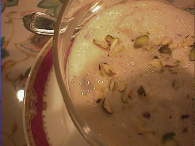 パキスタンの米と牛乳で作ったナッツがたっぷり入った冷たいデザート
