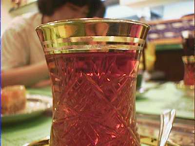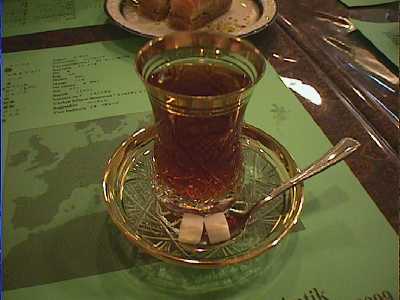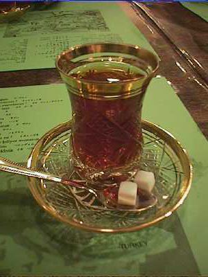 - デザートと一緒に紅茶も注文しようと思ったら、紅茶はサービスしてくれました。もちろんおかわりも。イスタンブールで出てきたのと同じ形の器だけど、これはさらにカットが入ってて高級感がありますね。(め)