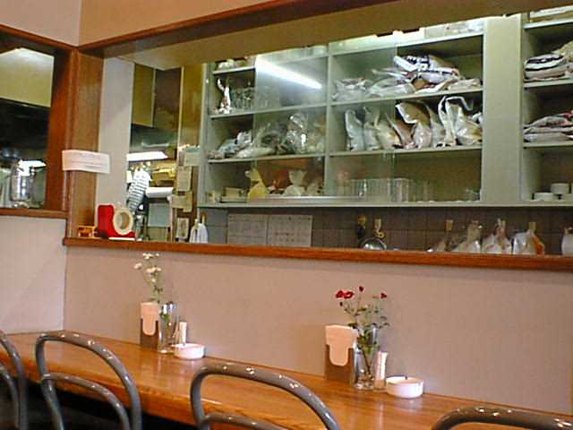 店内の様子。明るくて奇麗です。厨房の棚にはギャバンの袋入り香辛料とか豆とかが並んでいます。