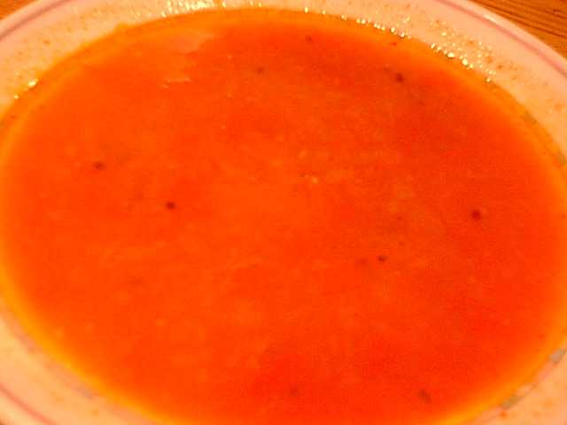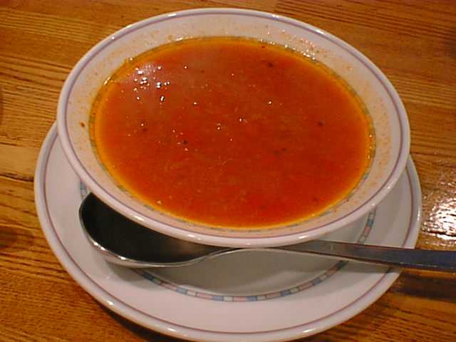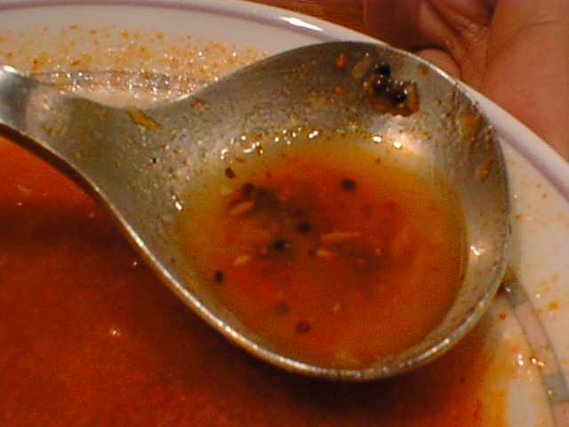 - ペパーが効いていて、なかなかいけるラサムスープです。底にマスタードの粒がいっぱい沈んでいます。量が少ないのが不満だけど、これとご飯だけでも十分楽しめます。(め)
