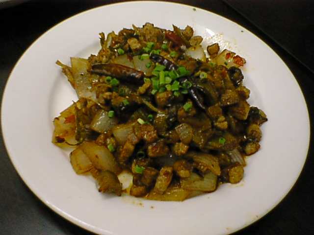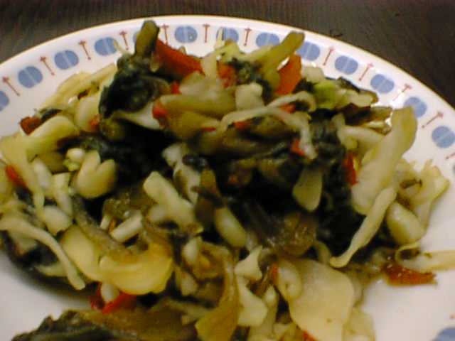 - この炒め物は高菜が効いてて、そして唐辛子の香りと味がさらに食を勧めてくれる。(な)