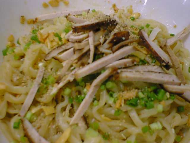 - 日本でもよくある油そばは噂によると「すっごい」と聞いていたので、食事の最後にこれは大丈夫かなと不安でしたが、ぜんぜん油っぽくないです。玉子麺がごま油と旨い具合にマッチしてます。あのお野菜の千切りがさっぱりした印象をもたらすのでしょう。(az)