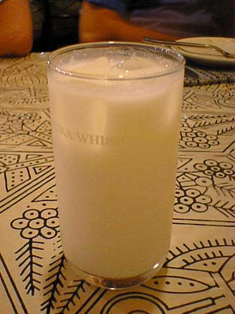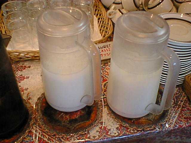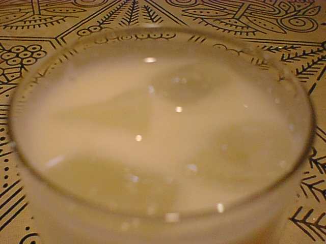 - なんちゃってラッシー。飲み終ると底に粉が残る。味はまぁなんちゃってラッシー。なんだかんだいいながら3杯ぐらいのんでしまった。(な)