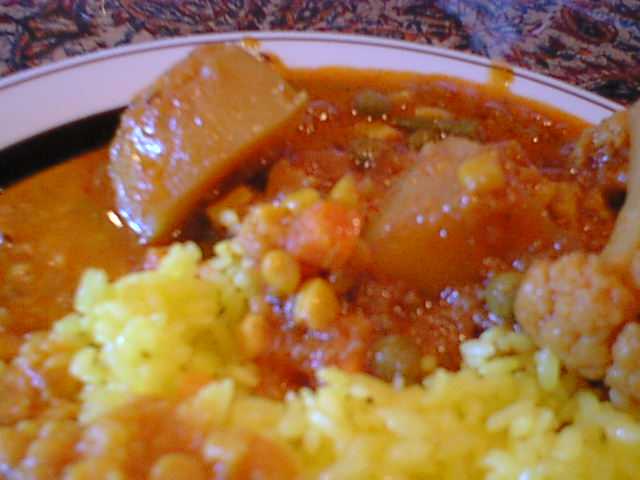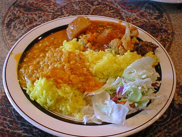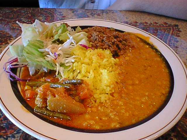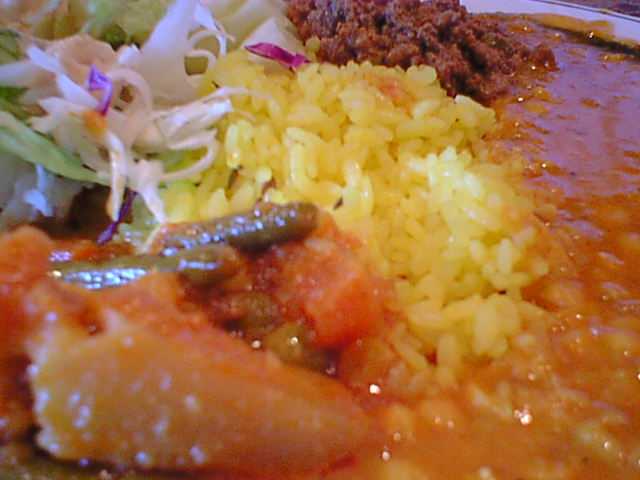 - 今日の中では最もきにいったカリー。カリフラワーとかジャガイモ..多くの野菜がはいってて、味わいが最高。なかなか贅沢な仕上りである。(な)