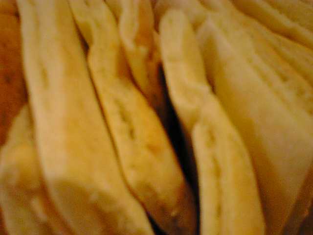 - そのまま食べるより、中にいろいろ詰めて食べるものだが、しっかりしている。(な)