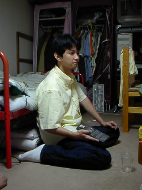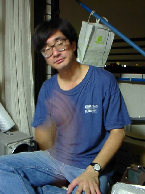 jinさんの後ろに見える物干し竿にぶら下がっているモロゾフの紙袋には、NTTDoCoMoのPHSホームアンテナが入っています。
