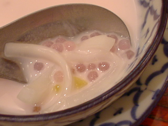 下の写真だと最初の一枚は白くて、後の二枚は少し紫色っぽいですが、後の二枚の紫色っぽい方が本当の色に近いです。タピオカが紫色してました。