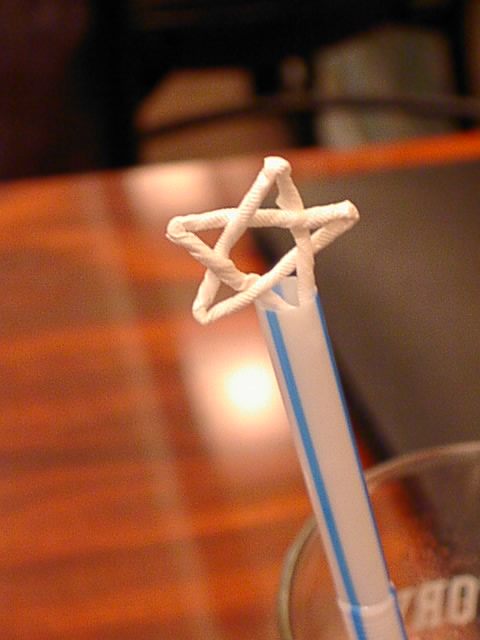 ストローの袋で星形を作るのだけど、これは特定の地域で流行ったものなのかなぁ。わたしは、かれこれ20年程前に神奈川方面の友人から教わったのだけども。