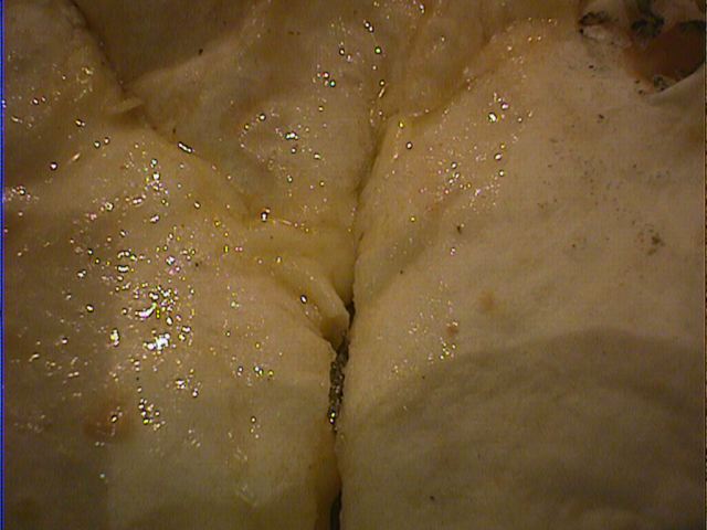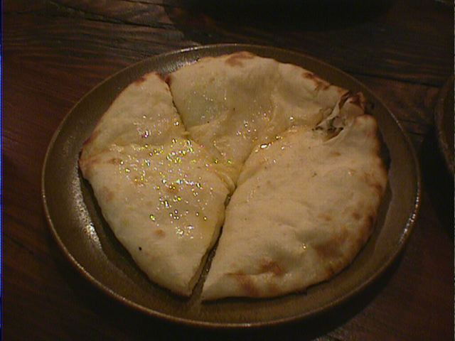 - ちゃんと3等分に切って出してくれたのが嬉しい。ガーリックが効きすぎなくらい効いてます。チーズがたっぷりで満足できます。(め)