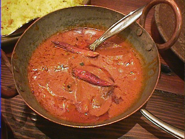 - 洋風のチキントマト煮のようなカレー。でも適度にスパイシーでちゃんとインド料理になっています。これはこれでいいかな。(め)
