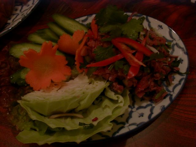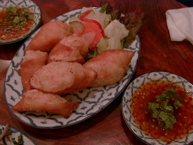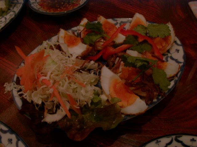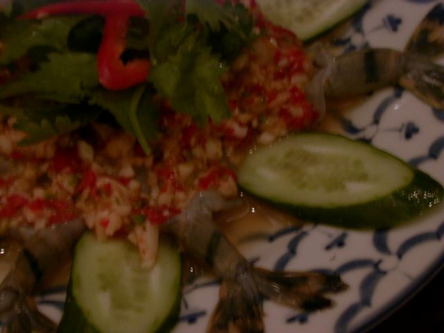 生の海老にとうがらしとにんにくがのっている料理と、デザートの高野豆腐のようなプリンがとくにおいしかったかな、と。でもぜんぶおいしかった。タイ料理って不思議とくせになりますね。
