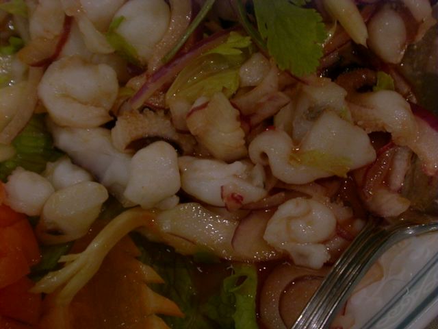 - メニューの写真では普通の身に飾り包丁を入れたイカに見えるが、出てきたものはゲソを刻んだものだった。まあこれはこれでまずくはないけど‥‥。(め)
