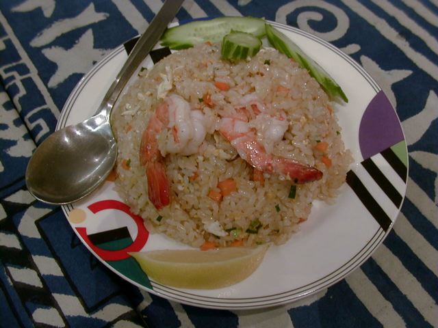 - ニンジンが入っていたり、味付けもピラフっぽいとうか、タイ料理のカオパットとは違った方向になっている。これ、個人的には好きです。(め)