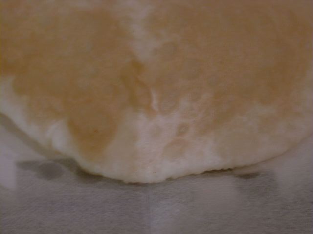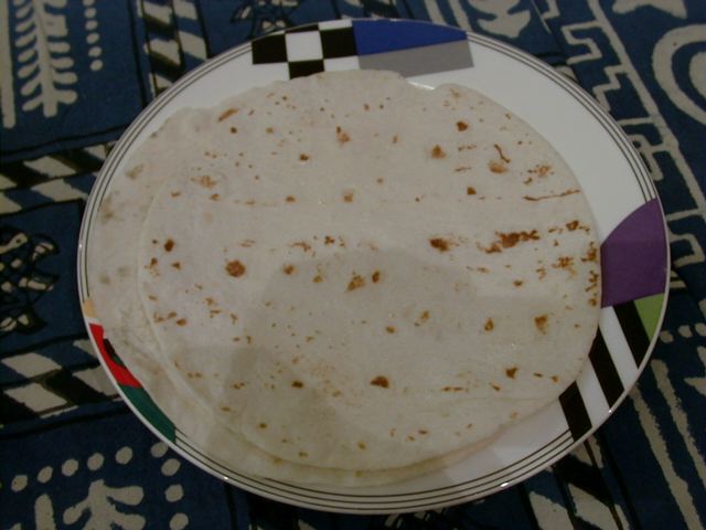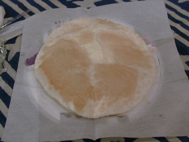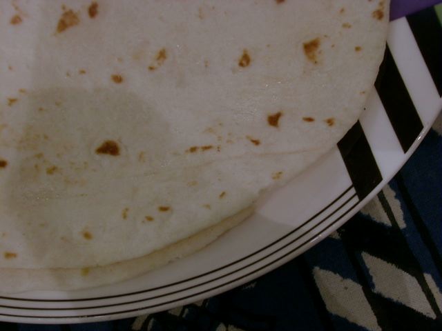 - 見た目はチャパティーなんだけど、粉っぽさがなく、ふっくらやわらかくて全然違ったもののよう。これはチャパティーではないので比べちゃいけないと思うけど、チャパティーという名前で出てきたものとしては今までで一番美味しかった。今日一番印象に残った一品。azukiさんがいたら解説してもらいたかった。(め)