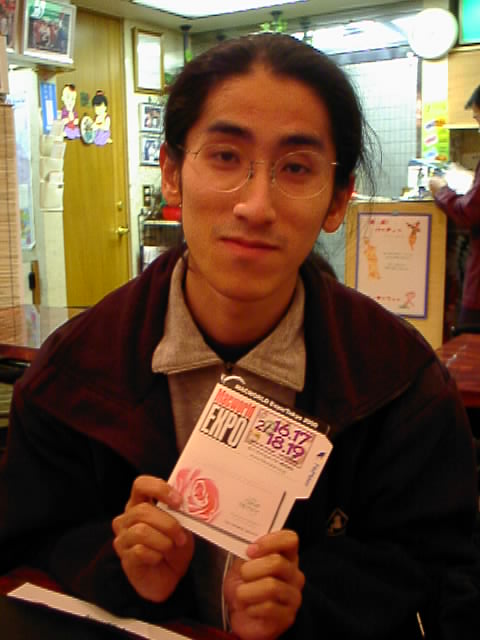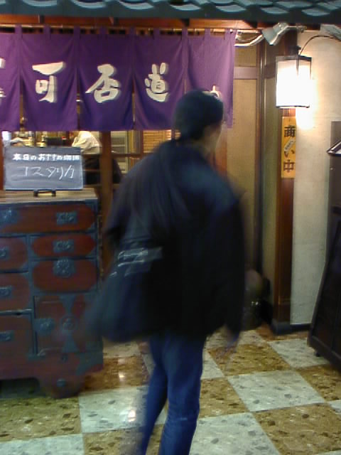 新宿西口ヨドバシカメラなどでエッジ用の通信カードの品薄状況を確認したり、新PowerBook発表に伴う旧機種の値下がり状況を確認した後、可否道に入っていくogino.くん。