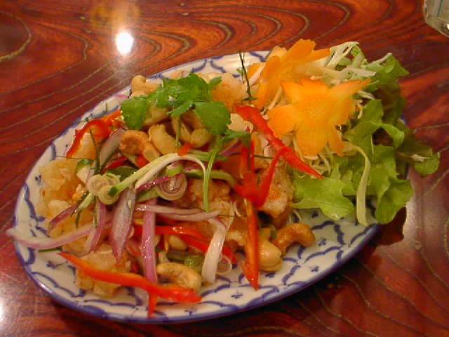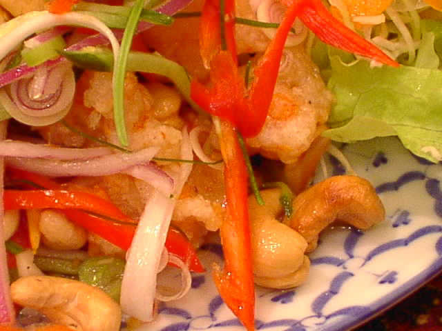 - 揚げた海老のサラダですね。ヤムも食べたいし海老、トートマンクンなんかも食べたいなんていう時にいいかも。特に少人数の時とか、ヤム類をあまり数とれない時とか。(び)