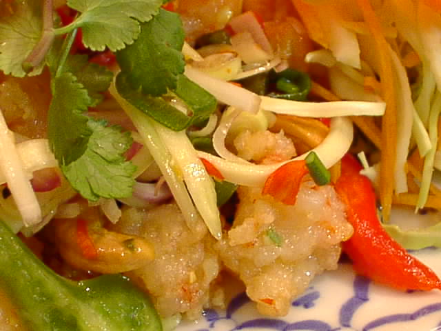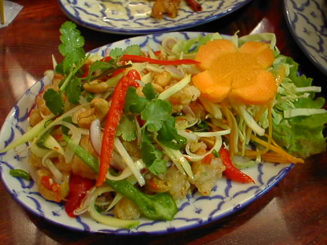 - 鶏肉とカシューナッツ炒めです。以前は、これがある所では、中華でもタイ料理でも必ず頼むESDの定番メニューでしたね。ちょっと大きめに切った柔らかい鶏肉が入っています。スパイスたっぷりという料理ではないので、刺激はあまりないけど、ご飯が欲しくなる美味しさです。(び)