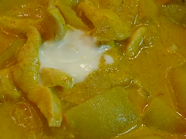 - 辛くはなくて、どちらかというと優しい味のカレーです。独特の甘酸っぱさが好きです。一晩おくとこの甘酸っぱさが増して更にいい感じになるらしいけど、一晩おいたのをお願いするわけにはいかないよね(笑)。事前に予約しておくと、前の晩から作っておいてくれたりするかな。(び)