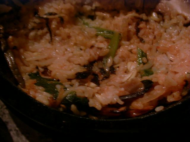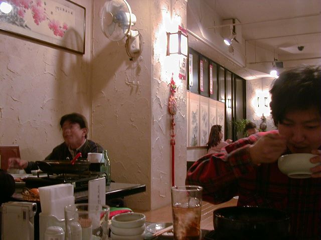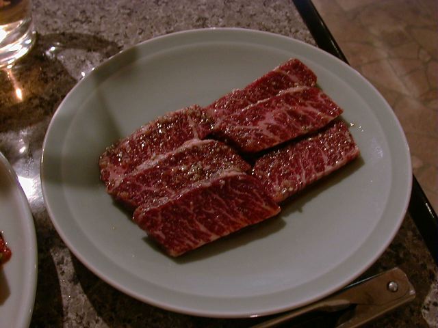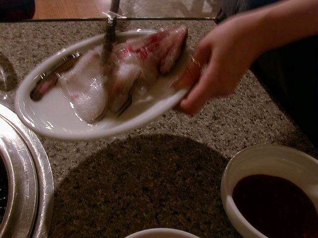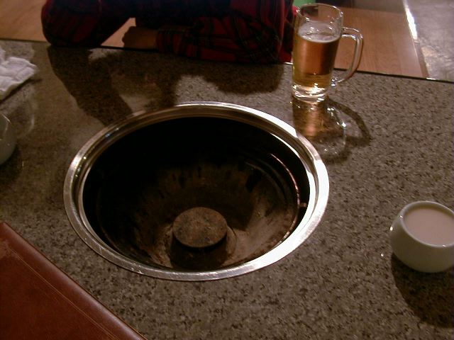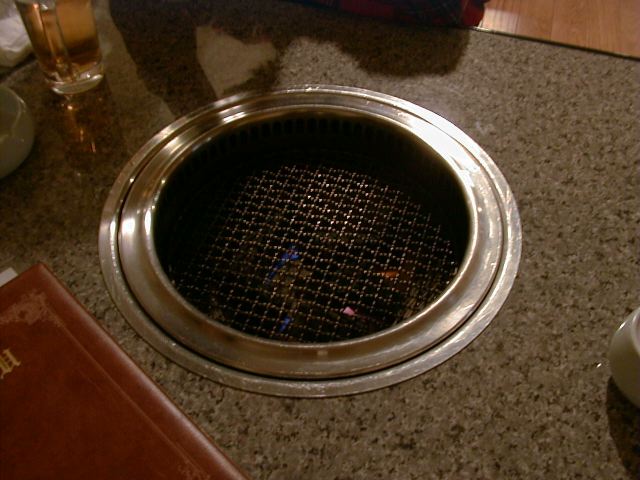 味はと言うと、特筆するような物は、う〜ん、といった感じです。普通。テーブルに炭をおこすためにガス台が内蔵されているのはちょっと変ったシステムですが、普通の入れ物にいれて持ってくる炭と違って食べ終っても下げられないのでちょっと邪魔です。