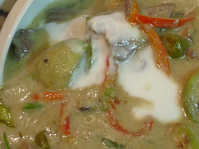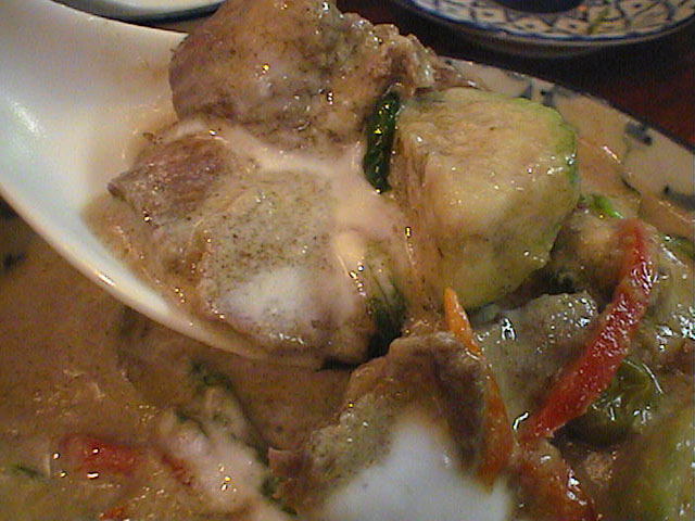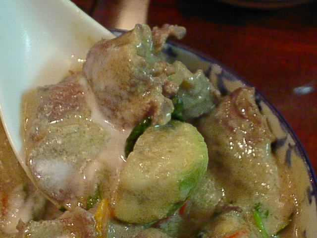 ラオターさんもグリーンは牛肉がいちばん合うと以前言ってました。味が濃厚な感じになっていいんですよね。レッドカレーだと鷄がいいかな。(を)