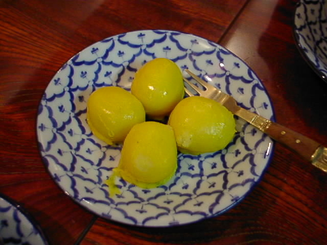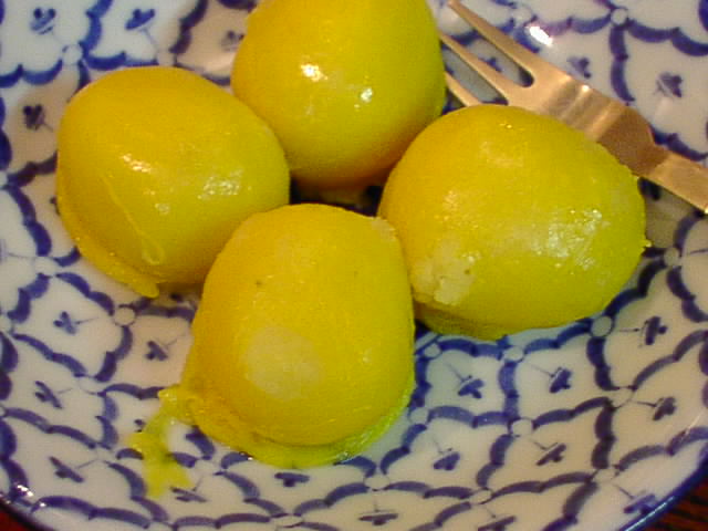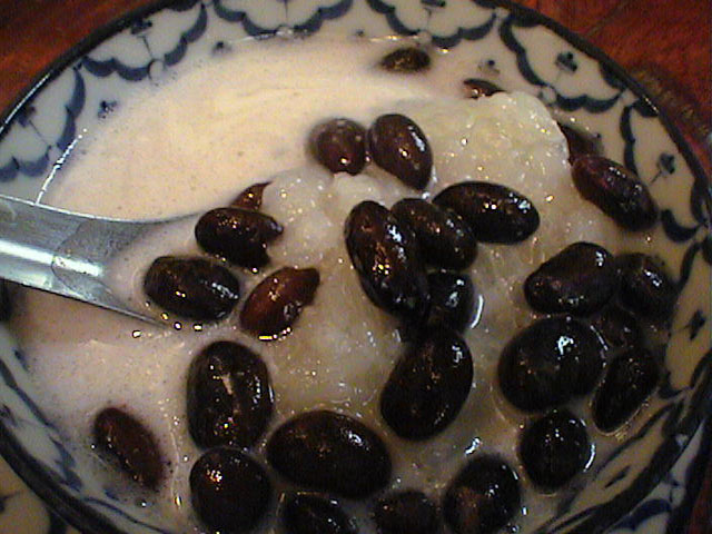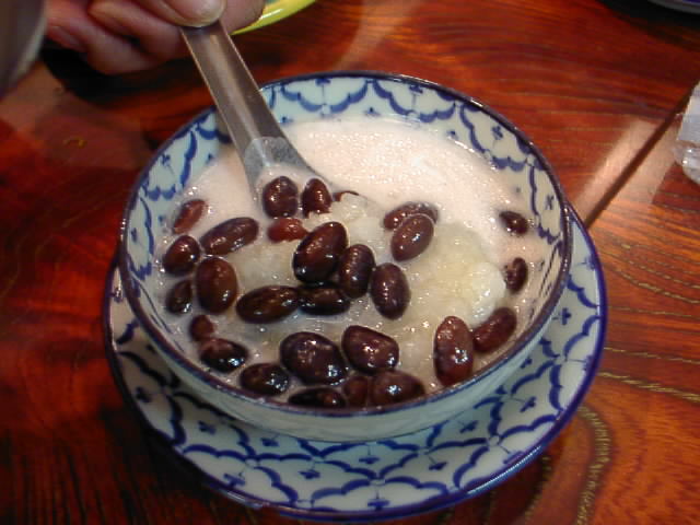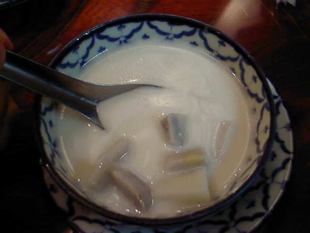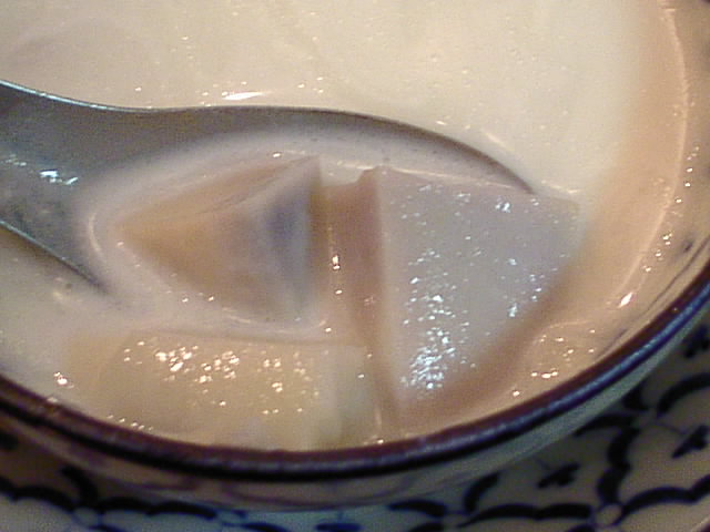 昔お萩をココナッツミルクの中に落とした人が発見したお菓子?って感じ。すっごく甘いけど美味しく食べれます。ブァッケーングァットの方が甘さ控え目っぽくて食べやすいかな。(JK)