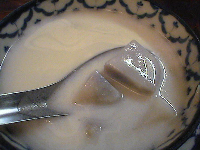 最近の定番デザート。今日は2、3個ちょっと硬めのサトイモが入ってました。(び)