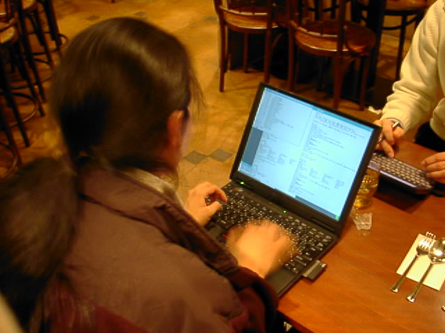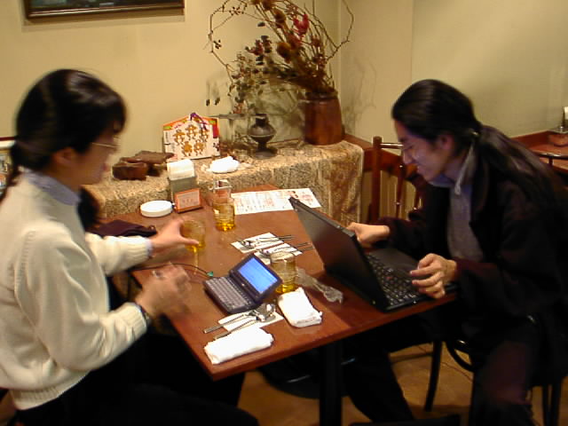 店内からPHSでインターネットする人々。かなりあやしいです(笑)。