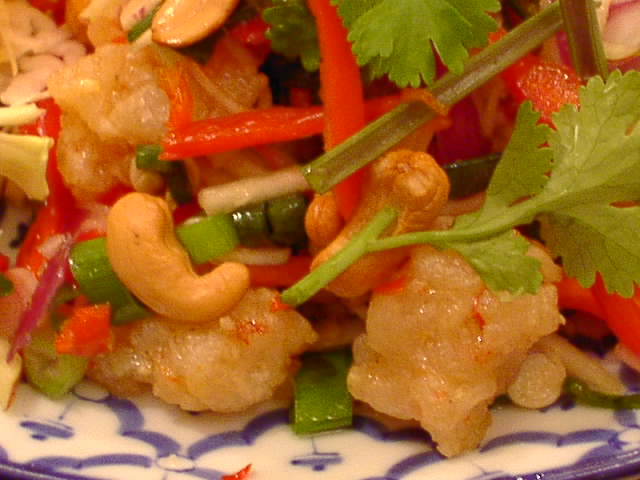 - ヤムタクライのカシューナッツをちりめんじゃこにしたらこれになります。じゃこは衣つけて揚げてあります。ご飯と合いそう。(を)