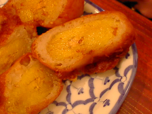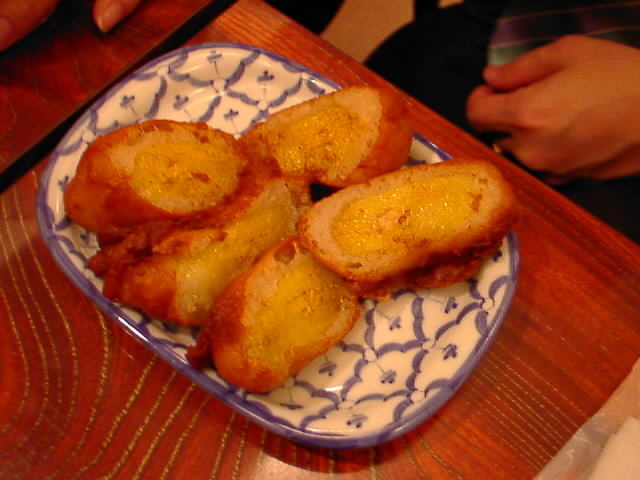 - 今日のは黄身がかたゆでっぽくしっかり火が通ってて、あったかいまま出てきました。うまいけど半熟っぽい方が好みかな。(を)