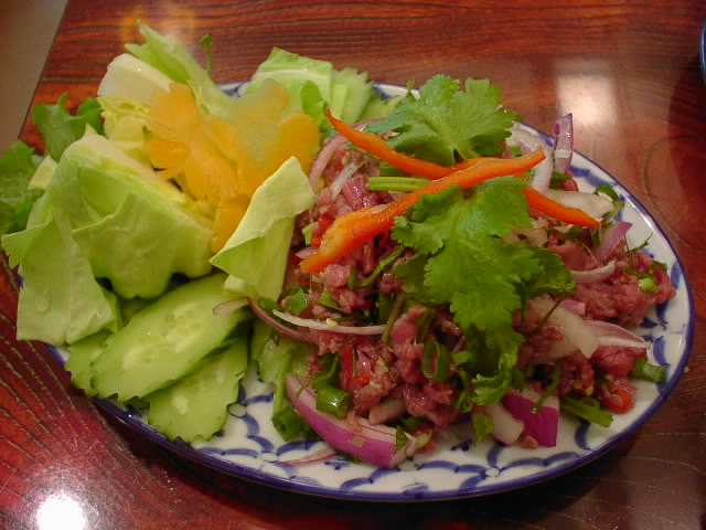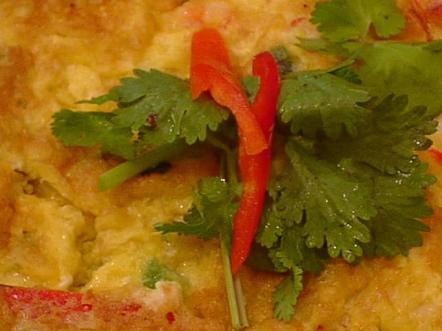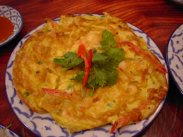 - ogino.くんがラオターさんに、これとゲーンパーを一緒に食べるといいと教わったのでとってみました。これ自体は、見た目通り、エビ入り玉子焼きという味です。(び)