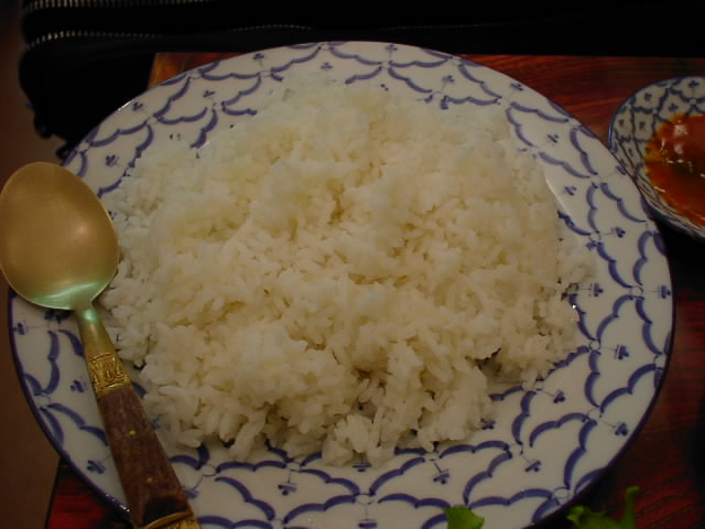 - ラオターさんのおすすめ通り、ライスにカイチョウグンサップをのせてゲーンパーをかけてみました。