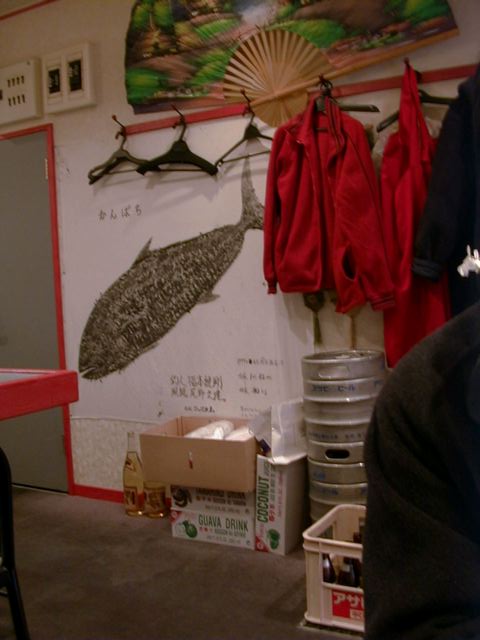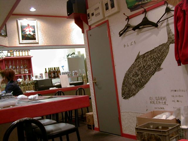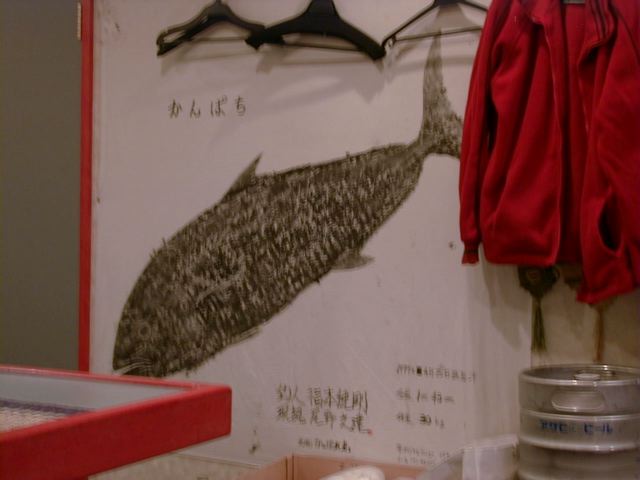 味についてはめしくんが書いてくれてますが、内装に大きな魚拓が飾ってあったり、奥の方に寿司ネタを入れるようなショーケースがあって、不思議な雰囲気を醸し出しています。(く)