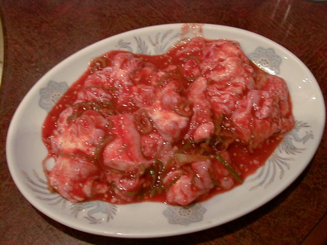 東レスの書き込みに済州島のめずらしい料理が食べられるとあったのでこの店を選んだのだけど、おすすめとあった鍋物がメニューになくて、刺し身以外は普通の焼肉メニューを食べました。脳みその刺し身には感心。これだけでもこの店を訪れる価値はあると思います。焼肉メニューは正統派で飾り気がなく、実質的。タレが素材によく合っていて、どの皿も満足のいく内容です。基本がしっかりしていて、何を頼んでも安心という印象。コストパフォーマンスもよいと思います。繁盛しているのも納得できます。個人的にもまた行きたいお店です。(め)
