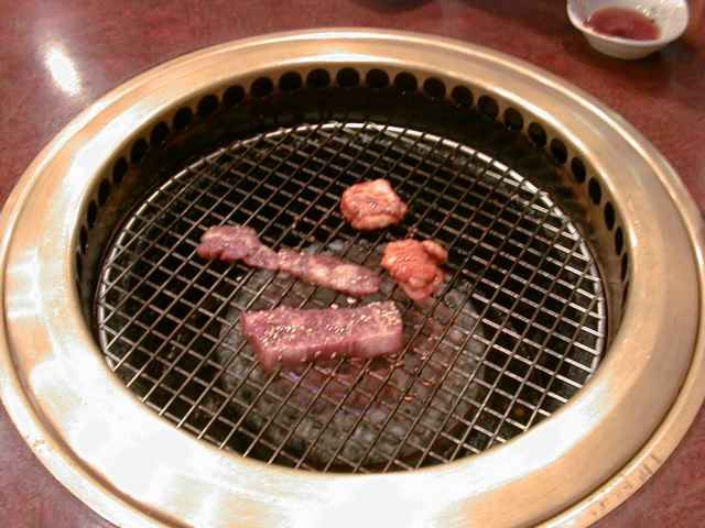 肉を焼く様子。