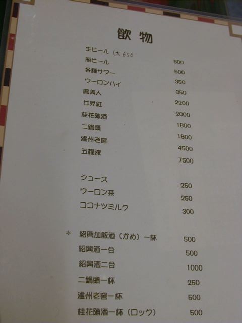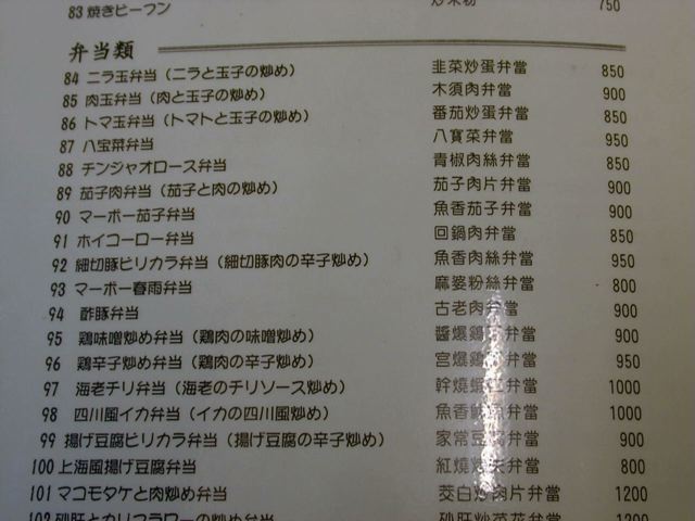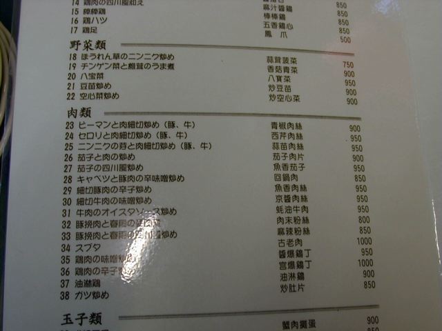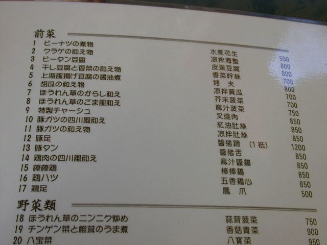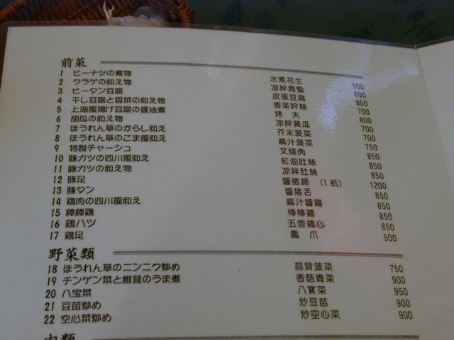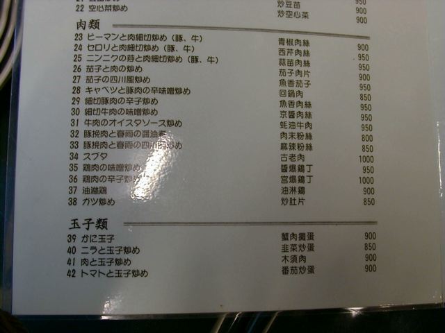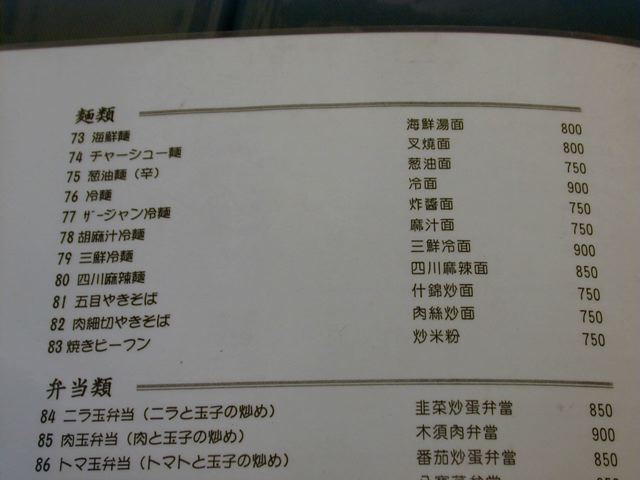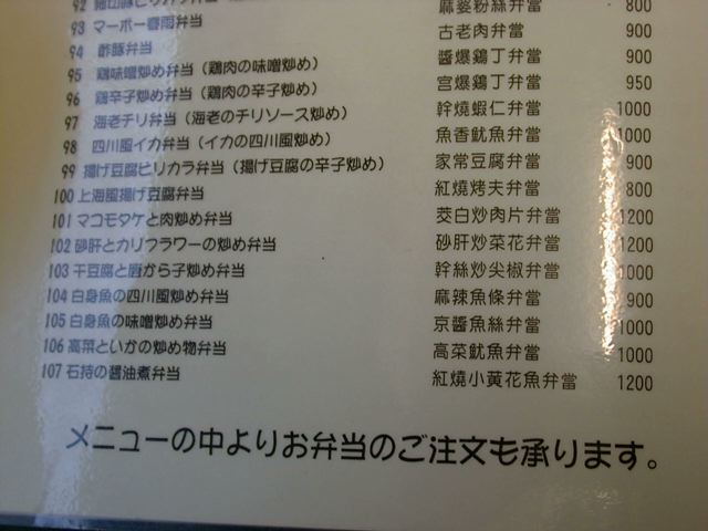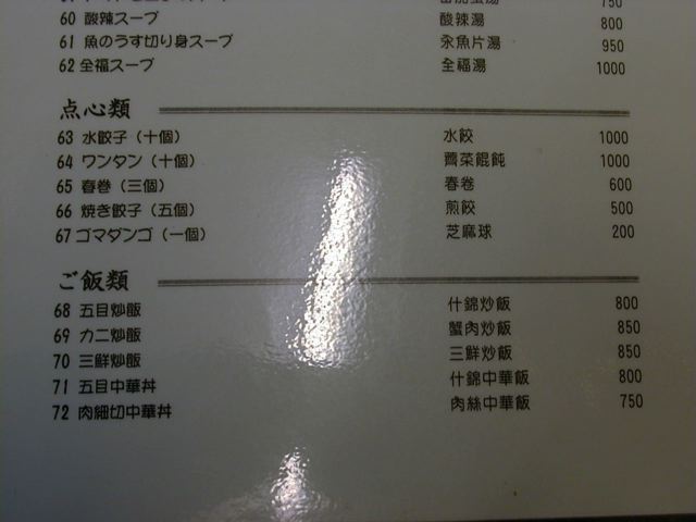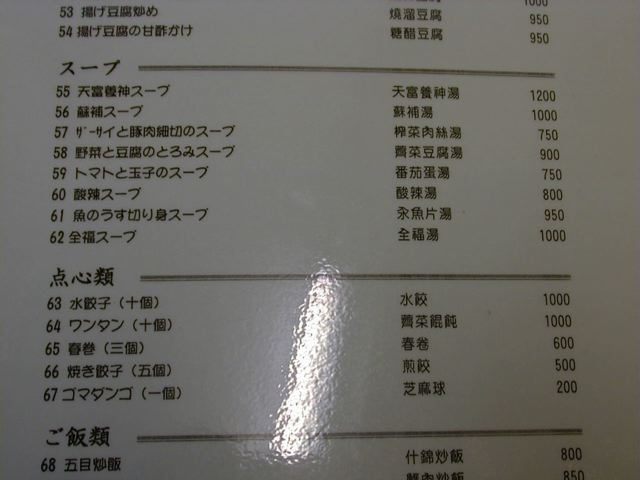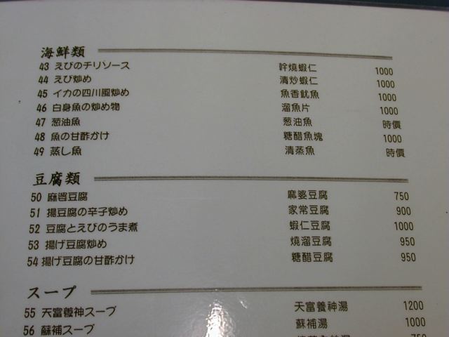 天富のメニュー