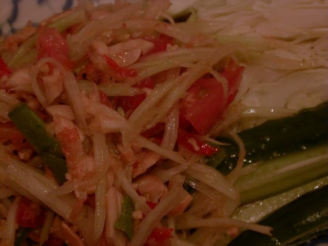 普通に辛い、標準的な味のソムタム。個人的にはちょっと甘いタイプが好きだったりするけど、これはこれで文句ないです。(め)